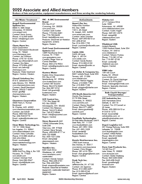 Brokers of fats and proteins, equipment manufacturers, and firms serving the rendering industry