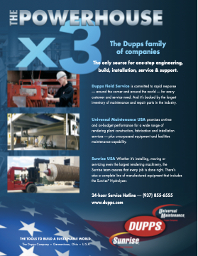 Universal Maintenance USA promises on-time and on-budget performance for a wide range of rendering plant construction, fabrication and installation services — plus unsurpassed equipment and facilities maintenance capability.