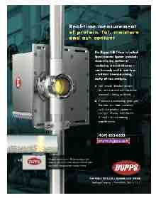 Real-time measurement of protein, fat, moisture and ash content Rugged, non-invasive NIR spectroscopy uses material absorption rates of near-infrared light to provide precise content measurements. The Dupps NIR (Near InfraRed) Spectrometer System precisely measures the content of rendering process streams — continuously and in real-time — without time-consuming, costly o -line analysis NIR reveals detailed protein, fat, moisture and ash content as material is being rendered. Continuous monitoring gives you the data you need to always optimize product content — and you’ll know immediately if product is not meeting specifications. (937) 855-6555 www dupps com www.rendermagazine.com THE TOOLS TO BUILD A SUSTAINABLE WORLD The Dupps Company Germantown, Ohio U.S.A. Render 9